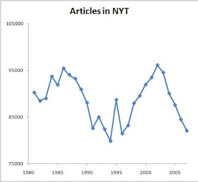 Re: online presence reducing the number of articles -- the NYT went online in 1995, right as its number of articles went up.