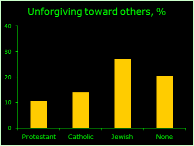 Across the board Jews are more unforgiving than Christians, and surprisingly, more than non-religious folks as well.